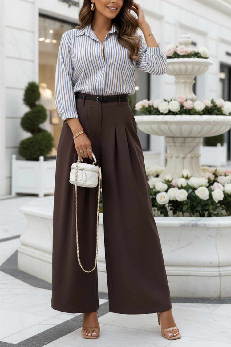 - Model ma wysoki stan, efektowny krój, luźny krój i pasek.