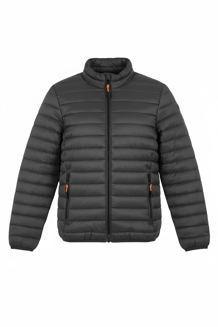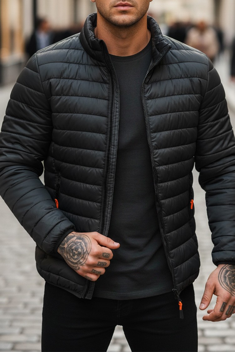 - Pikowana męska kurtka o prostym kroju w kolorze czarnym, idealna na okres przejściowy.