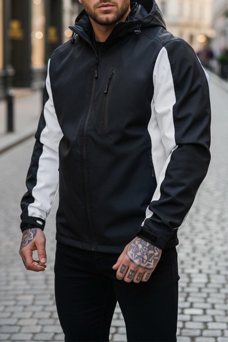 - Nowoczesna i wygodna męska kurtka softshell o sportowym kroju w kolorze czarnym, idealna na okres przejściowy.