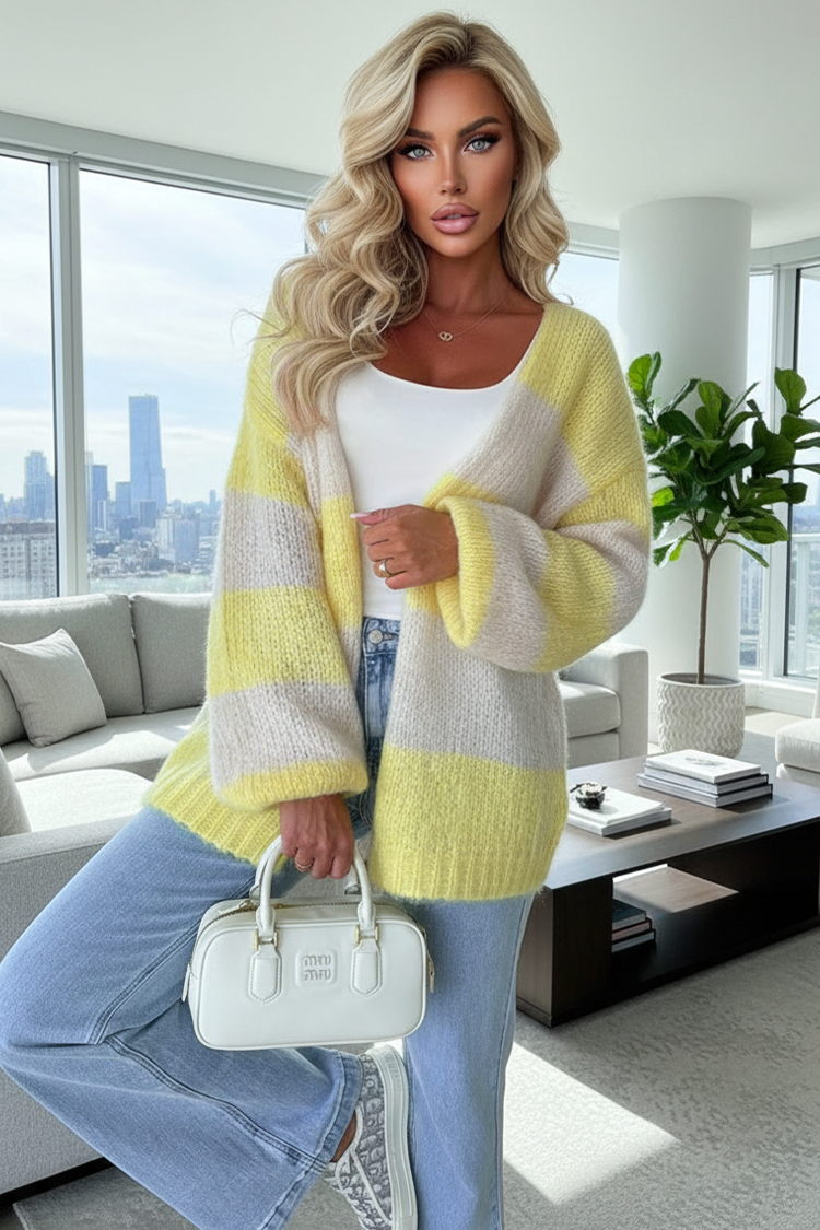 - Miękki i ciepły kardigan damski o klasycznym kroju, idealny na co dzień.