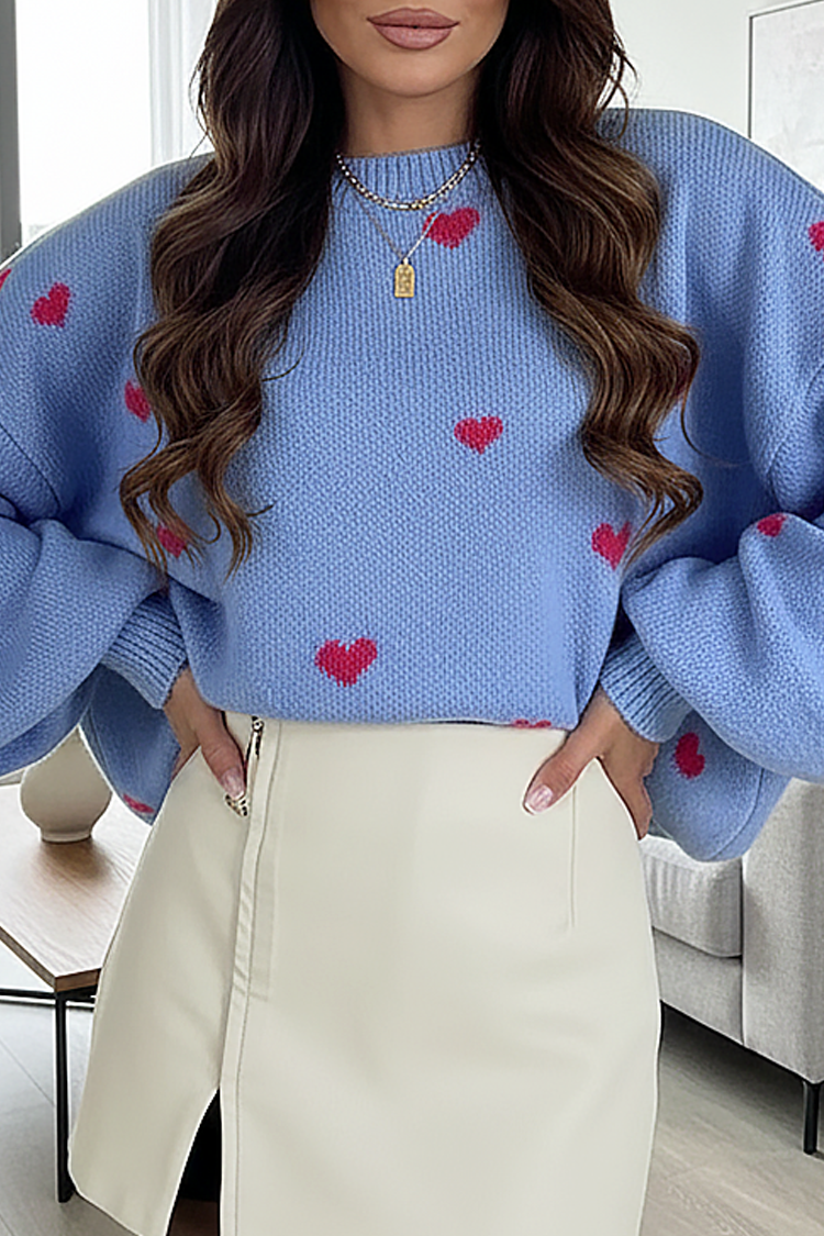 - Model ma wygodny krój, okrągły dekolt i atrakcyjny wzór w serca.