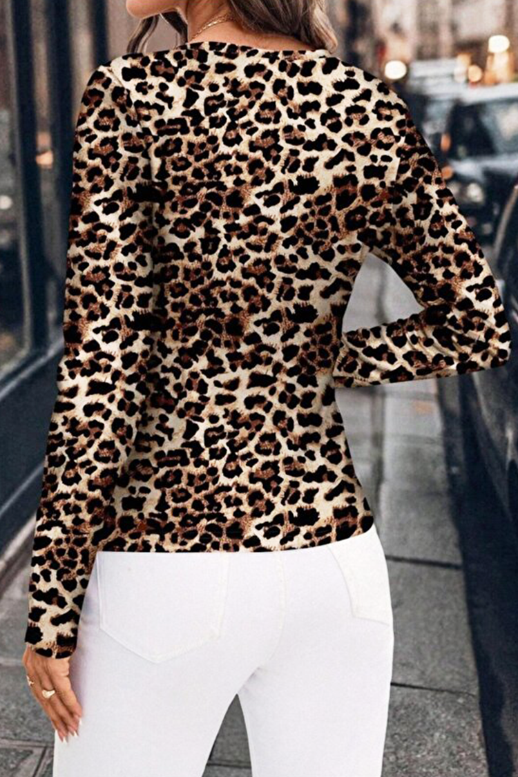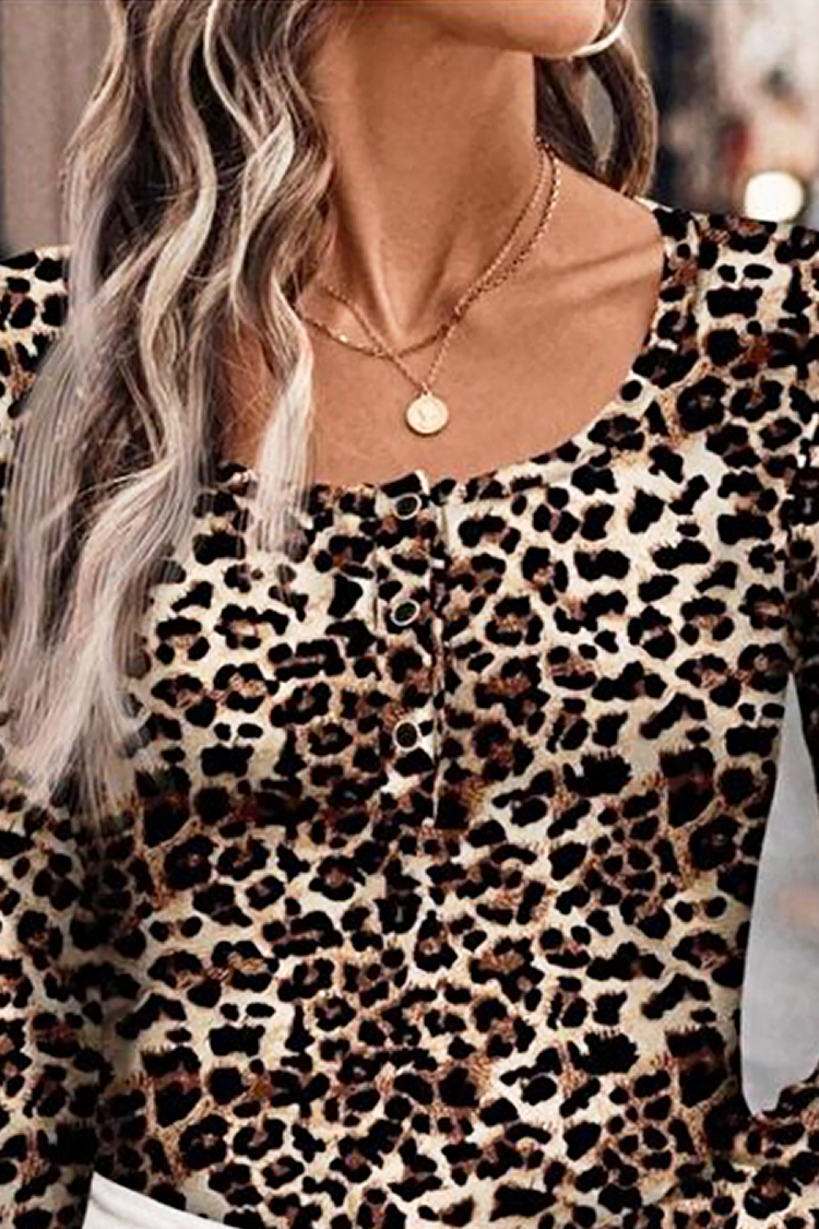 - Model ma klasyczny krój, dopasowany krój, długie rękawy, guziki i nadruk w panterkę.