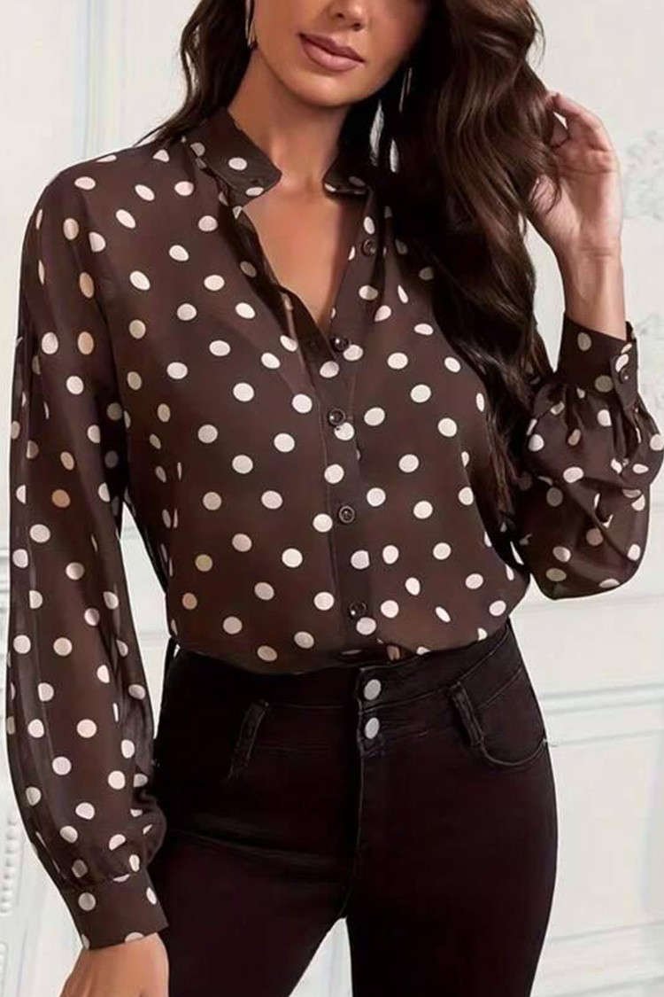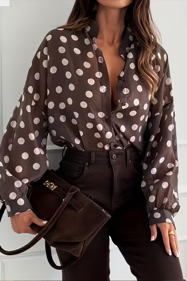 - Elegancka damska koszula z efektownym wzorem w groszki.