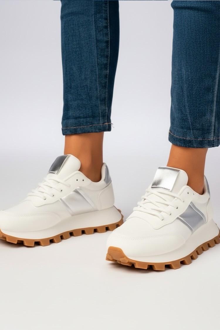 - Damskie sneakersy o czystym i sportowym designie z wygodną platformą, odpowiednie na co dzień.