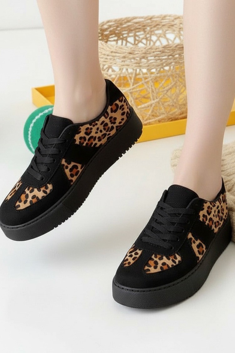 - Aby zapewnić sobie swobodę ruchów, wybierz te damskie tenisówki o atrakcyjnym wzornictwie i czarnym kolorze.