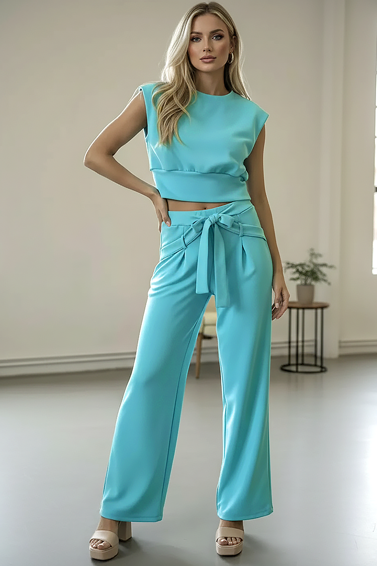 - Spodnie mają wysoki stan, wygodny krój i efektowne wykończenie w talii.