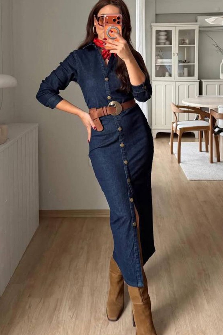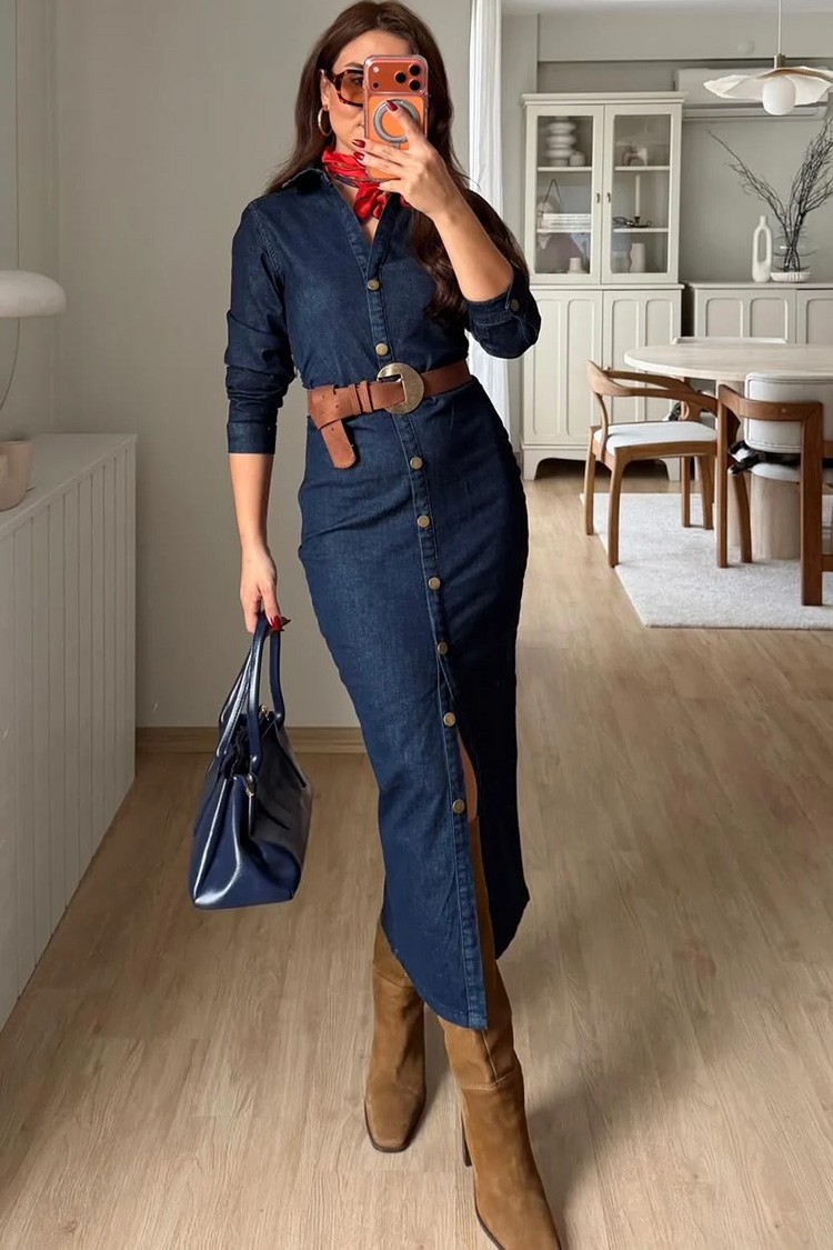 - Aby uzyskać delikatny i modny look, wybierz tę sukienkę jeansową, idealną na co dzień.