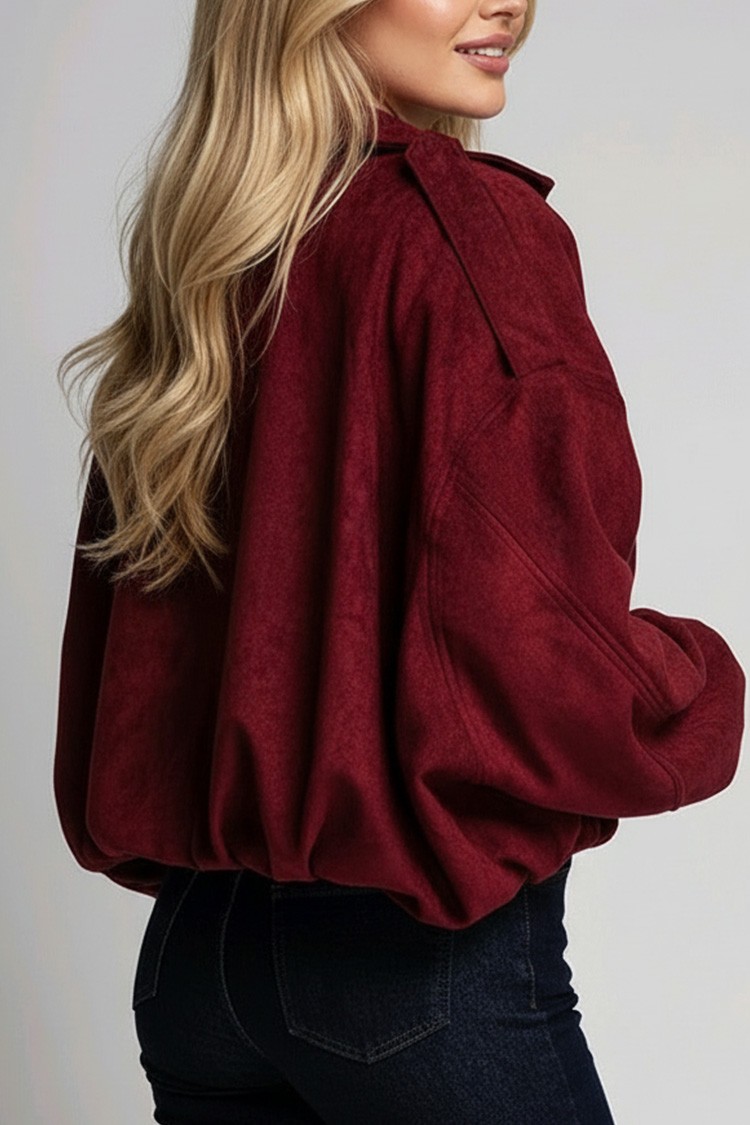 - Model ma oversize'owy krój, wykonany jest z ekologicznego zamszu i zapinany jest na zamek błyskawiczny z przodu.