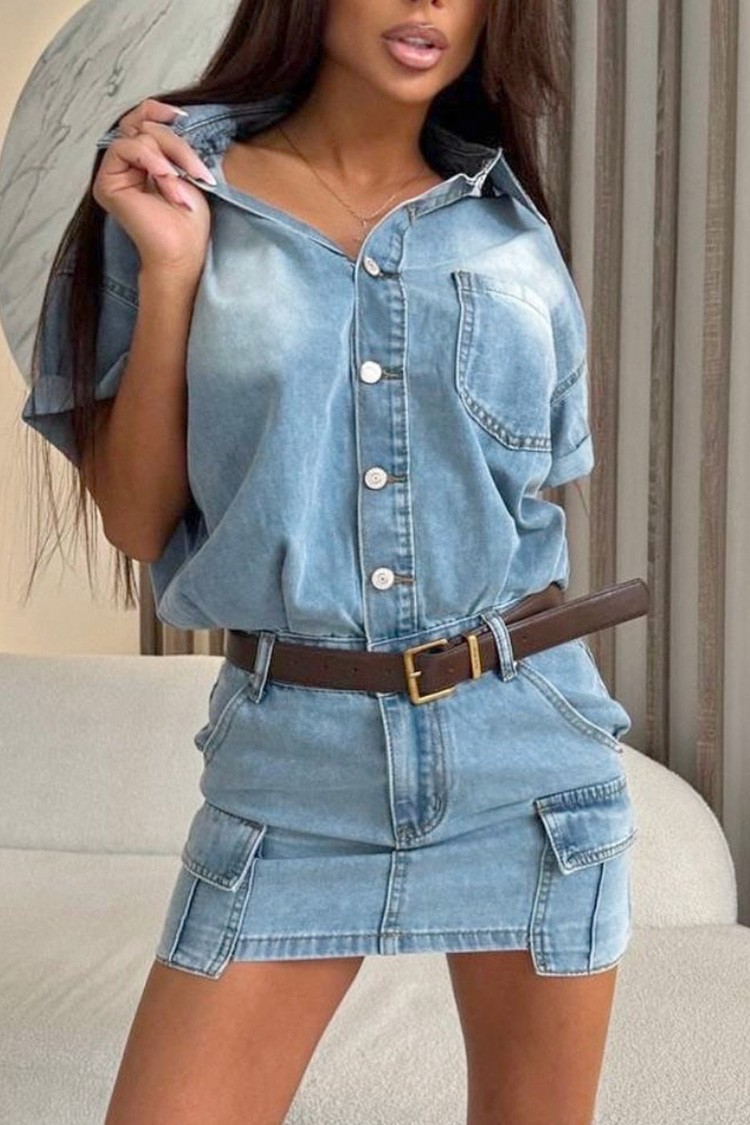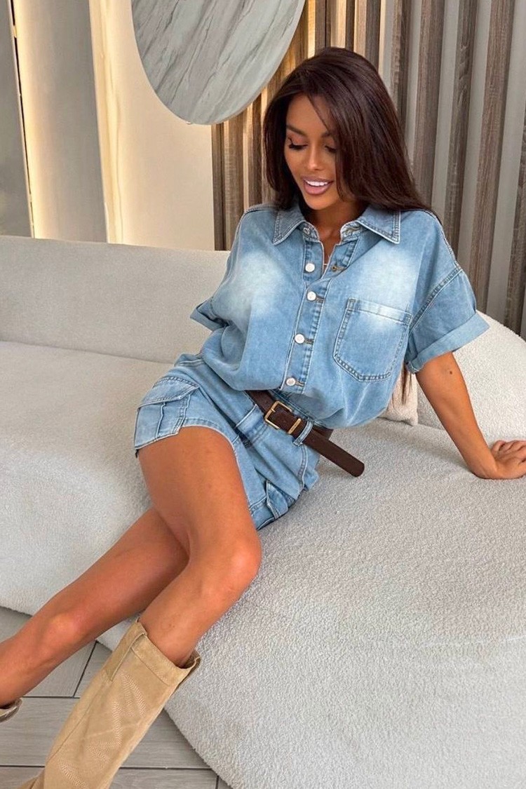 - Model ma atrakcyjny krój, krótkie rękawy i guziki.