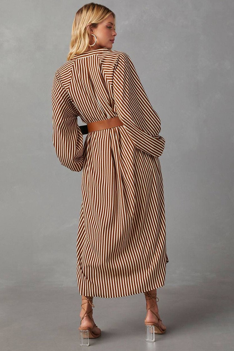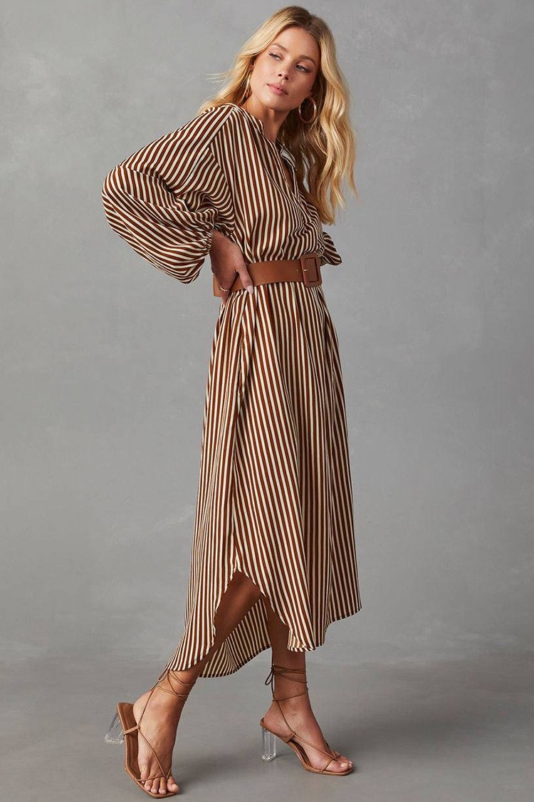 - Jeśli chcesz wyglądać stylowo, zaufaj tej sukience midi z atrakcyjnym wzorem w paski.