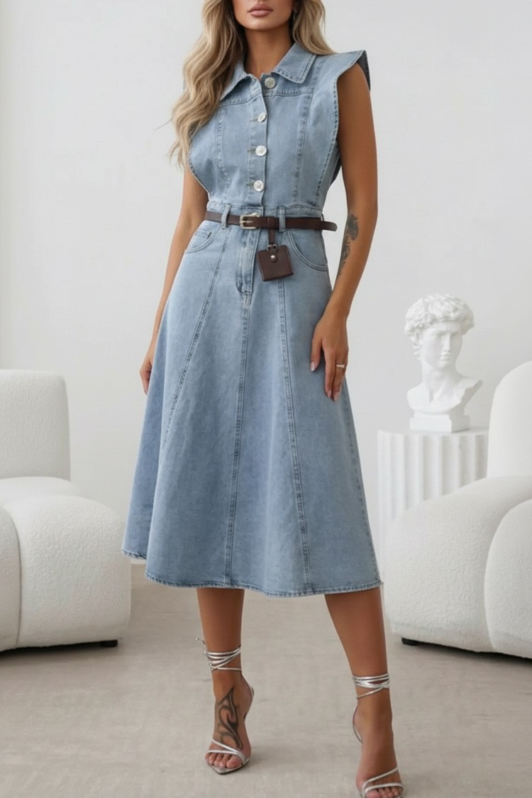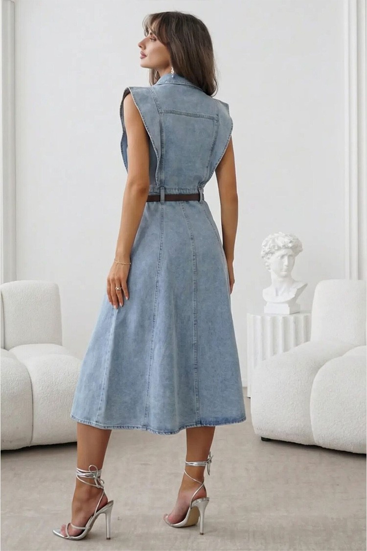 - Aby uzyskać delikatny i modny look, wybierz tę jeansową sukienkę, idealną na co dzień.