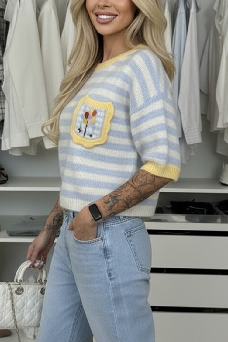 - Wyrazisty sweter o modnym wzorze, idealny do codziennych stylizacji.