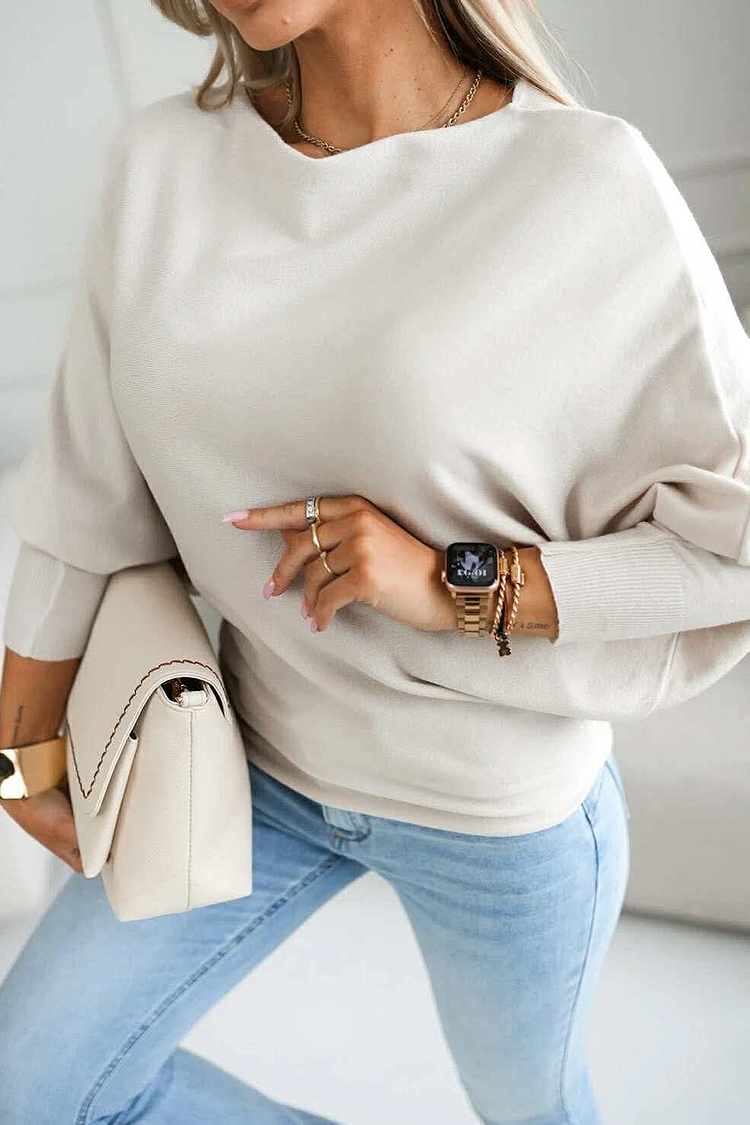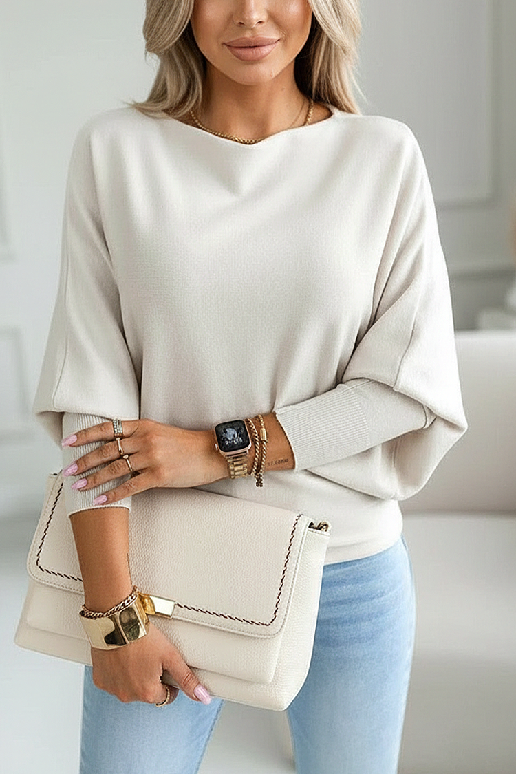 - Model ma wygodny krój, długie rękawy i jest w kolorze ecru.