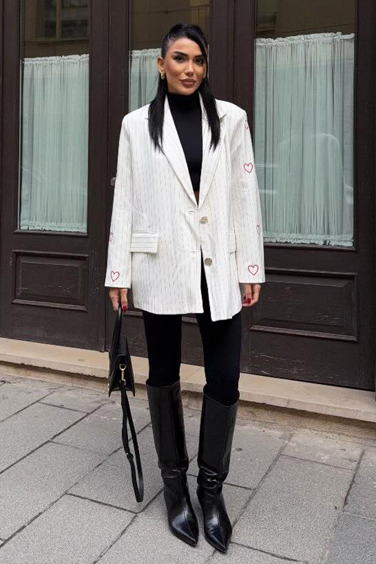 - Dopełnij swój look tą klasyczną marynarką, która sprawdzi się w różnych stylizacjach i stylizacjach biurowych.