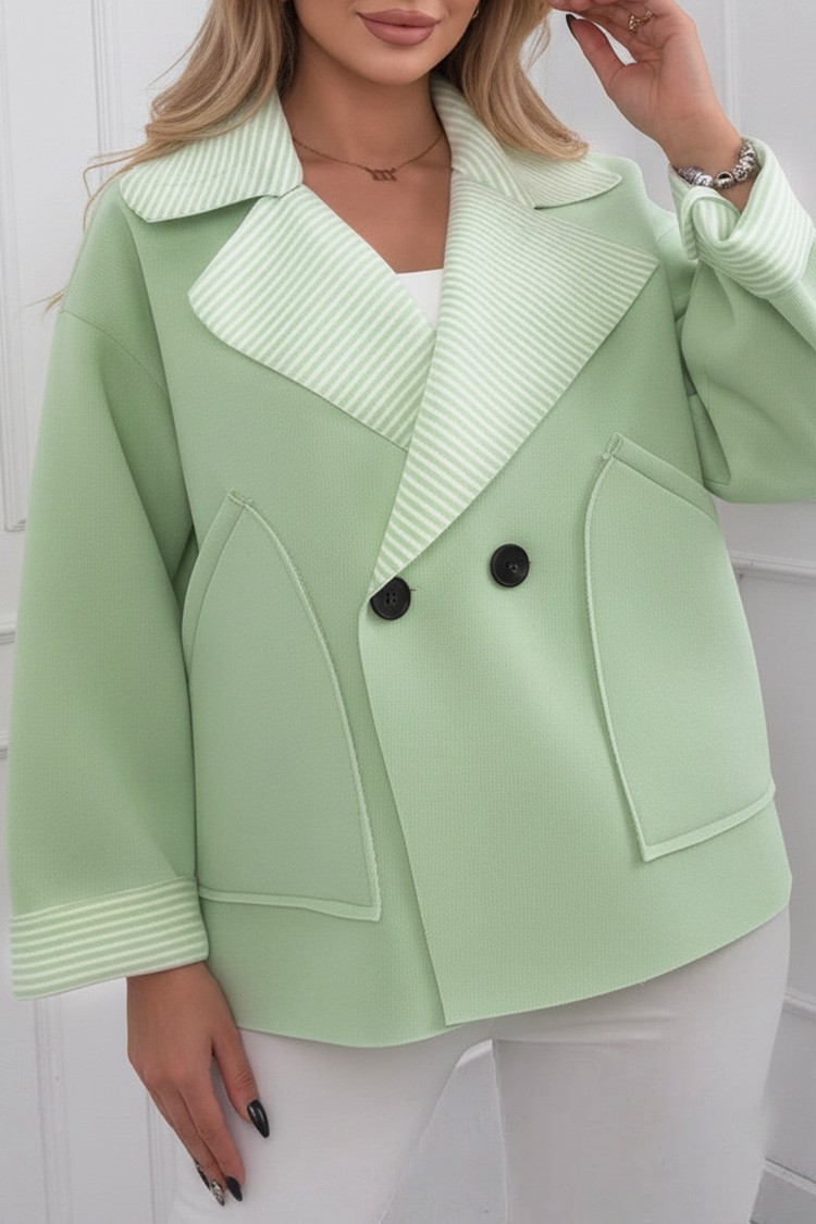 - Model ma krótki fason, kieszenie boczne i guziki z przodu.