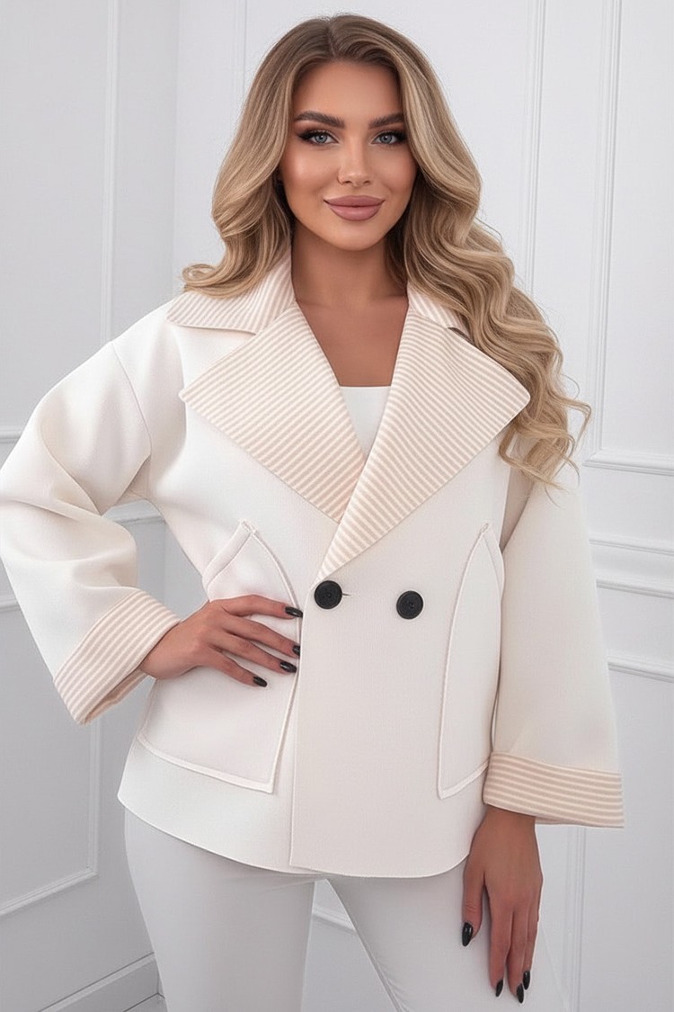 - Model ma krótki fason, kieszenie boczne i guziki z przodu.