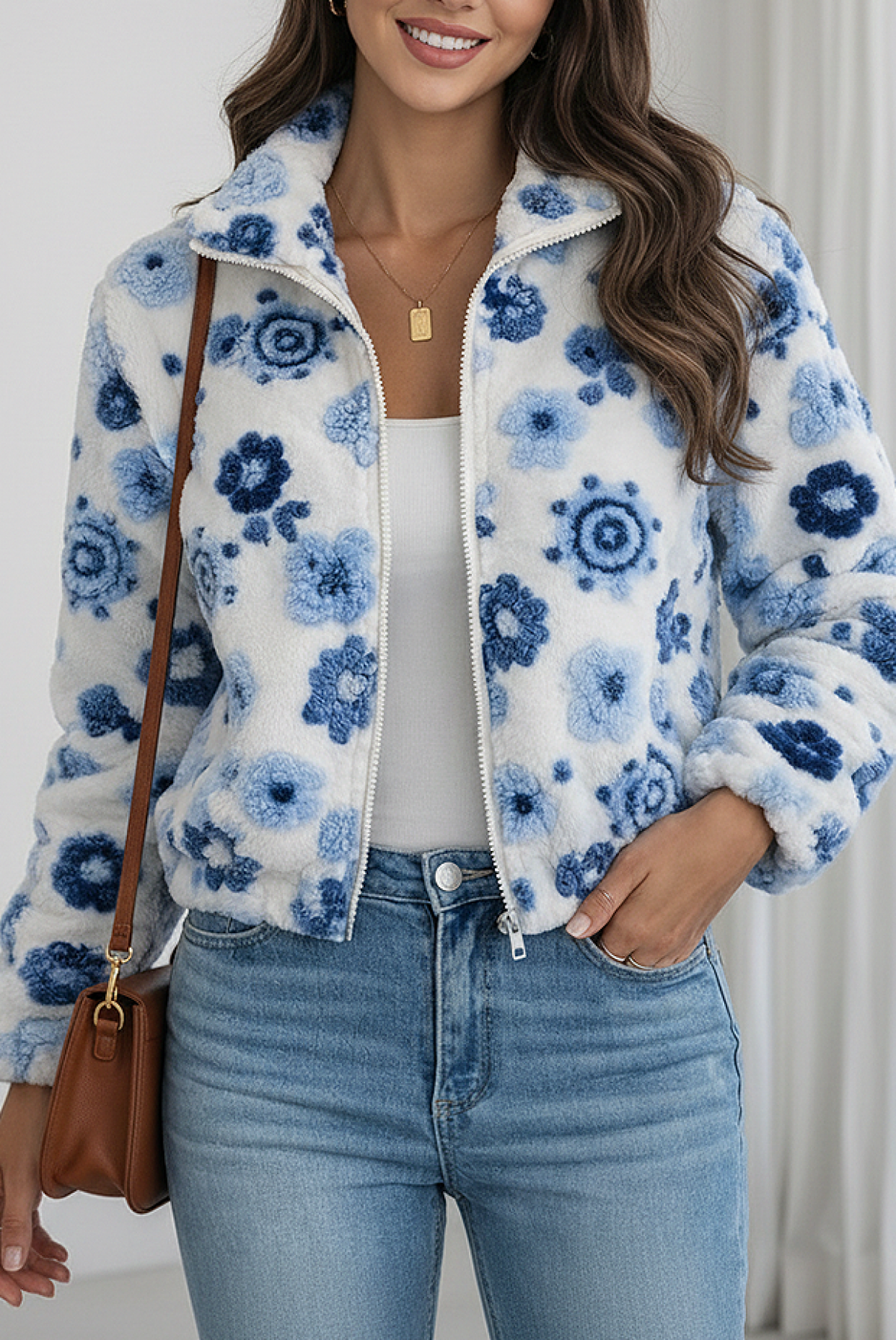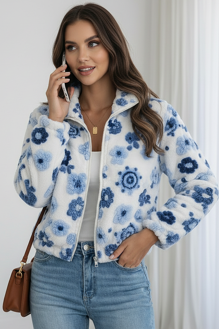 - Model ma klasyczny krój, miękką tkaninę, efektowny design, wysoki kołnierz i zamek błyskawiczny z przodu na całej długości.