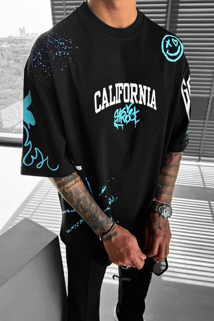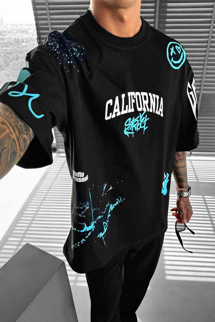 - Nowoczesny męski T-shirt o wygodnym kroju i nadruku, odpowiedni na co dzień, na spacer lub jako dodatek do sportowej stylizacji.
