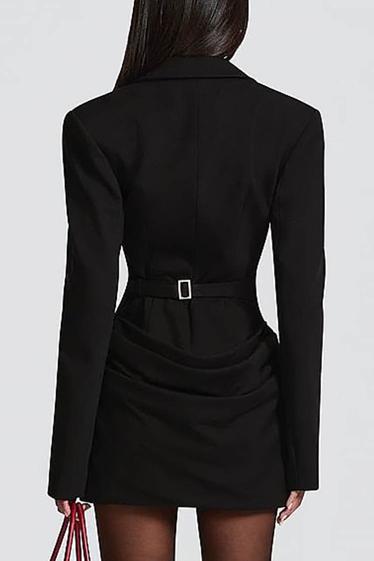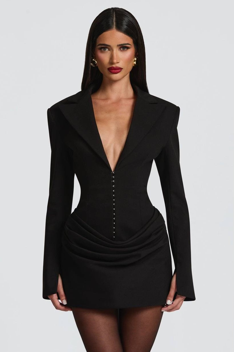 - Wybierz tę krótką sukienko-marynarkę w kolorze czarnym – idealną na imprezy i specjalne okazje.