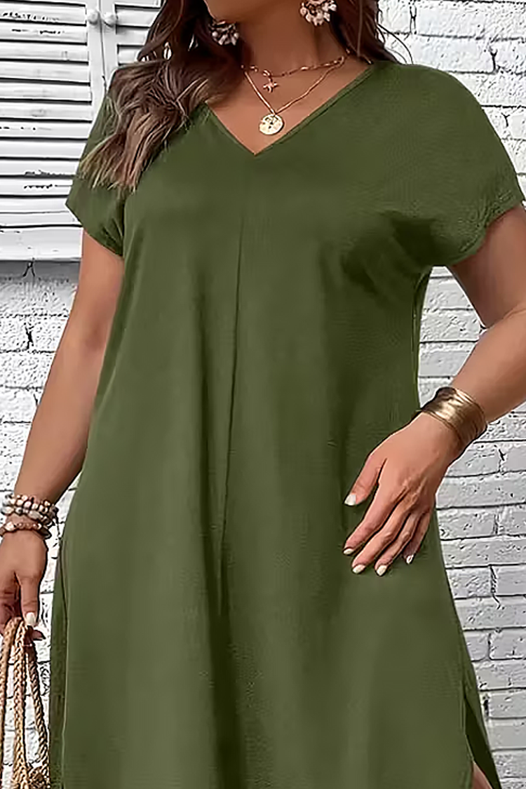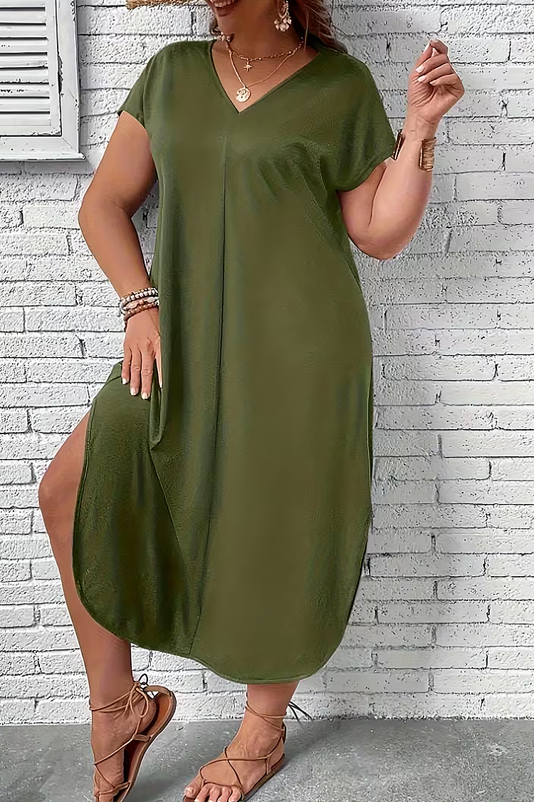 - Sukienka midi w jednolitym kolorze i prostym kroju, idealna na co dzień.