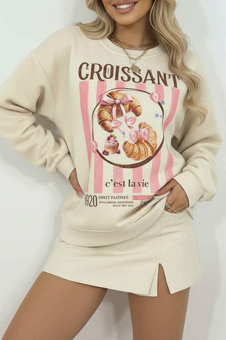 - Model ma długie rękawy, luźny krój i efektowny, kolorowy nadruk z przodu.