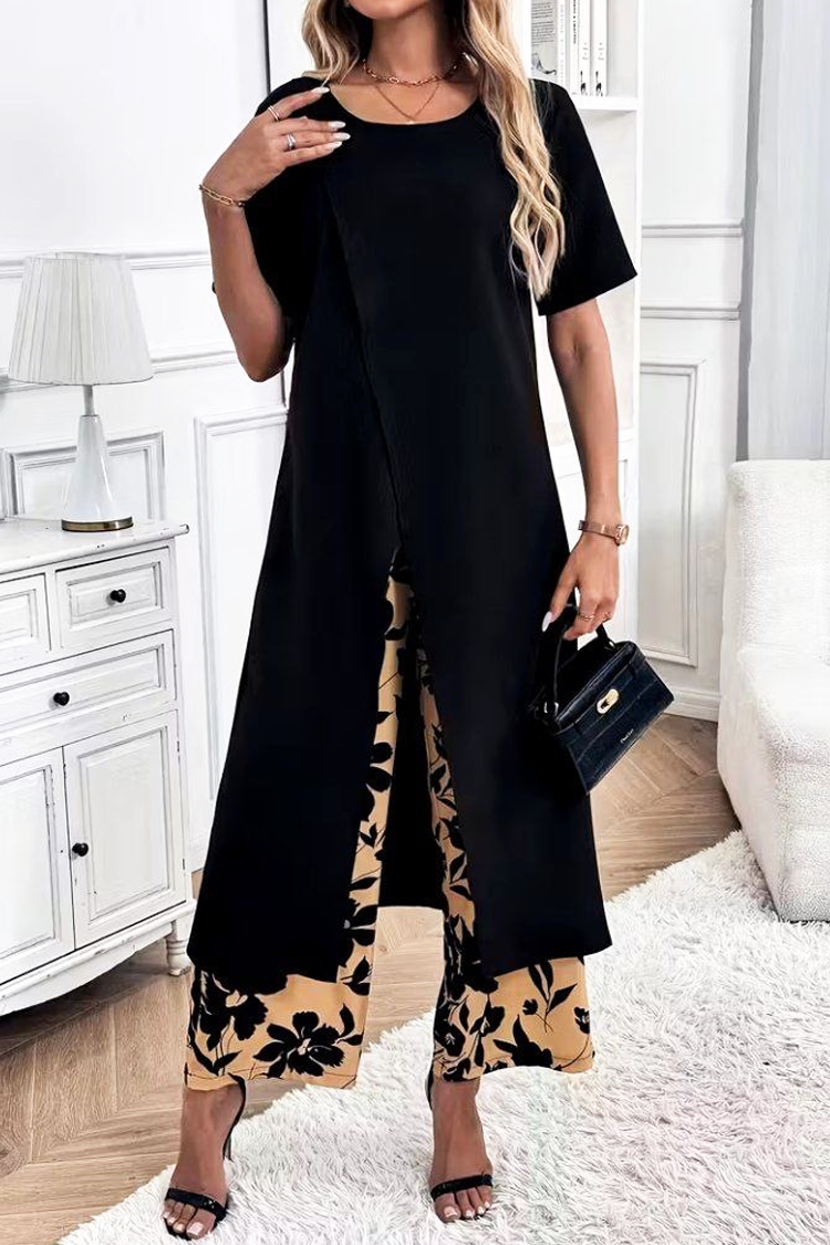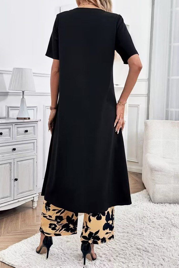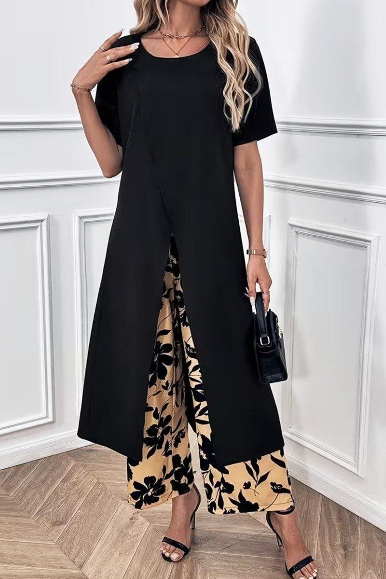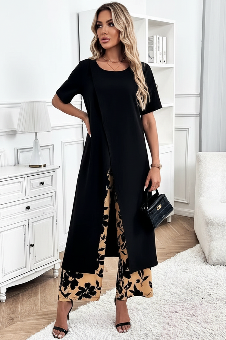 - Elegancki dwuczęściowy komplet – tunika i spodnie w klasycznych kolorach.