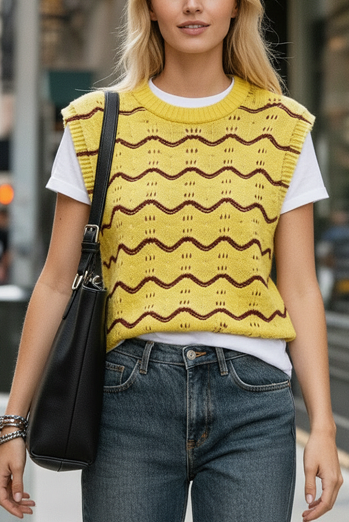 - Spektakularna kamizelka sweterkowa o modnym fasonie, idealny do codziennych stylizacji.