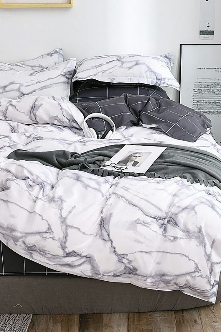 - Czteroczęściowy komplet pościeli o wymiarach 160x200 cm, wykonany z wysokiej jakości satyny bawełnianej.
