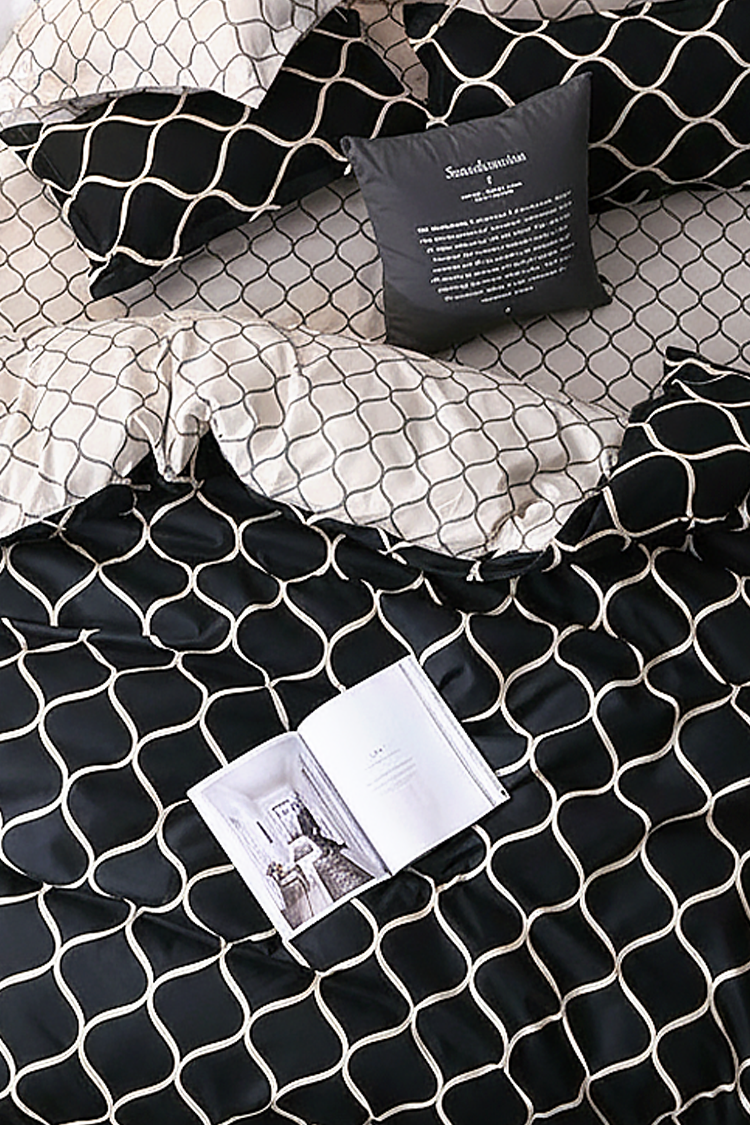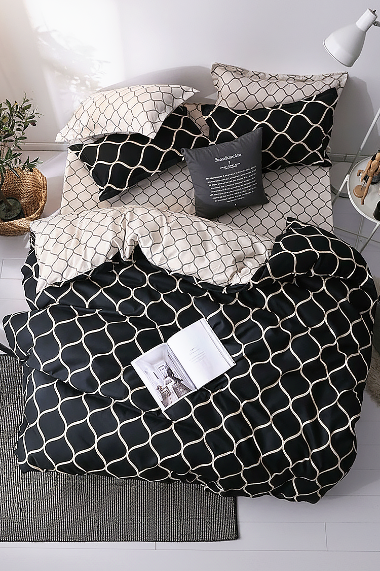 - Czteroczęściowy komplet pościeli o wymiarach 160x200 cm, wykonany z wysokiej jakości satyny bawełnianej.