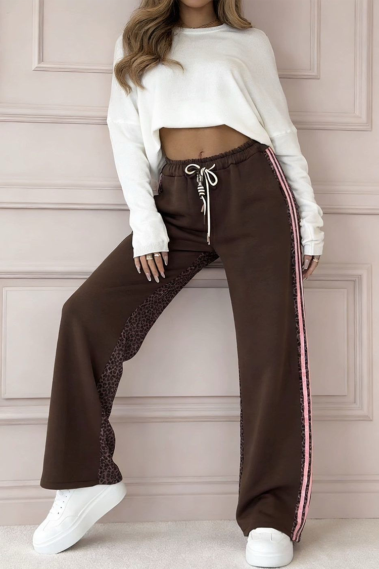 - Model ma wysoki stan, luźny krój, efektowne wiązania i zwierzęcy wzór.