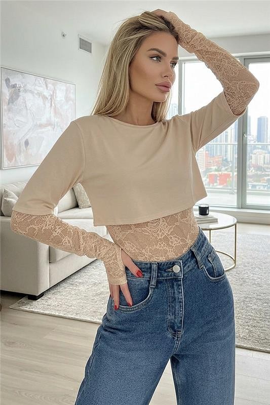 - Przyciągnij wzrok naszą nową ofertą spektakularnego body-bluzki z łączonej tkaniny.