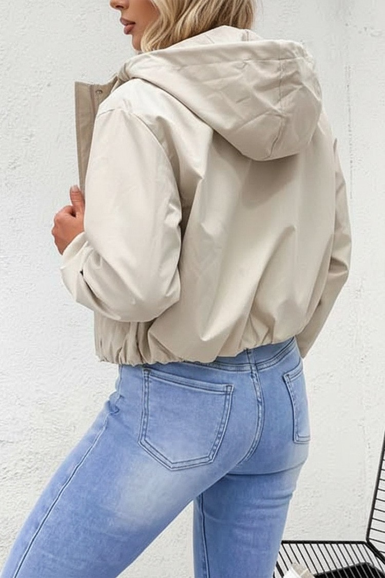 - Model posiada kaptur, zamek błyskawiczny na całej długości z przodu, skrócony krój i kieszenie boczne.
