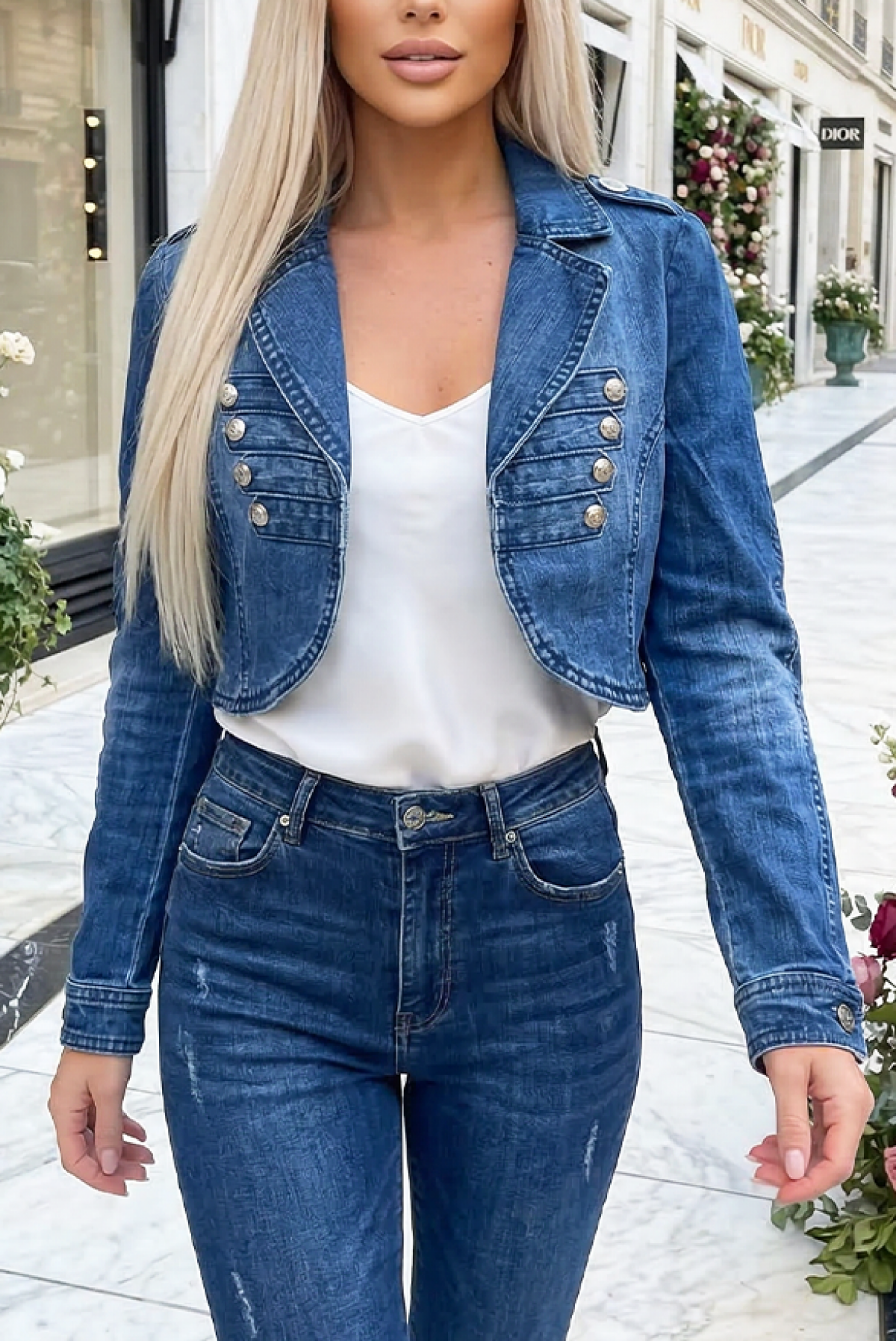 - Aby uzyskać stylowy wygląd, wybierz tę dżinsową kurtkę, pasującą do każdej stylizacji.