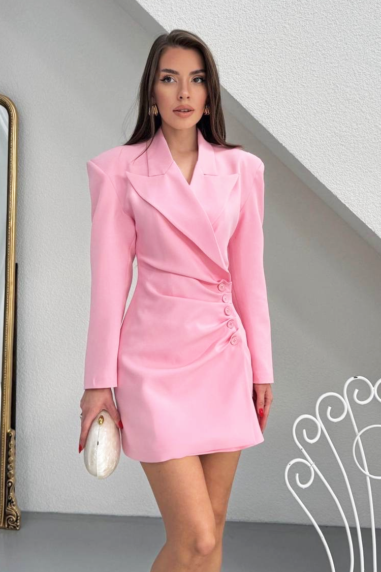 - Wybierz tę krótką sukienko-marynarkę w kolorze różowym – idealną na imprezy i specjalne okazje.