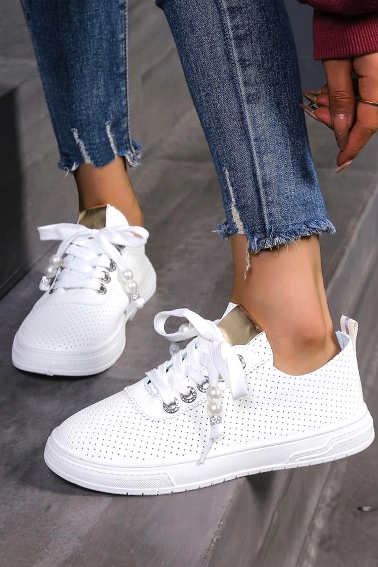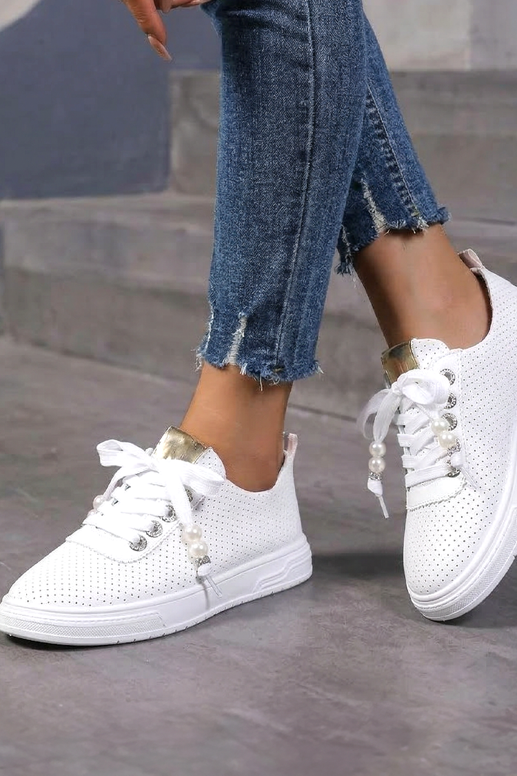 - Stylowy model ze sznurowadłami z perłowymi akcentami – dla maksymalnego komfortu podczas zakładania i noszenia.