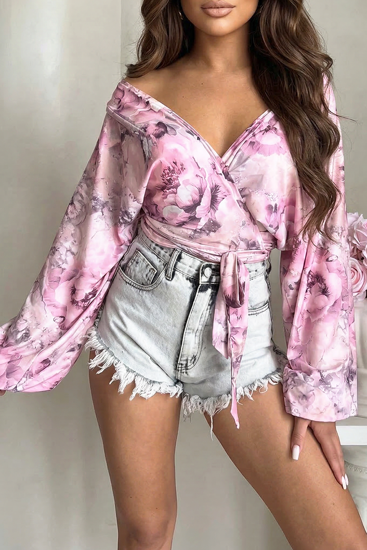 - Model ma długie rękawy, luźny krój, kwiatowy wzór i seksowny krój.