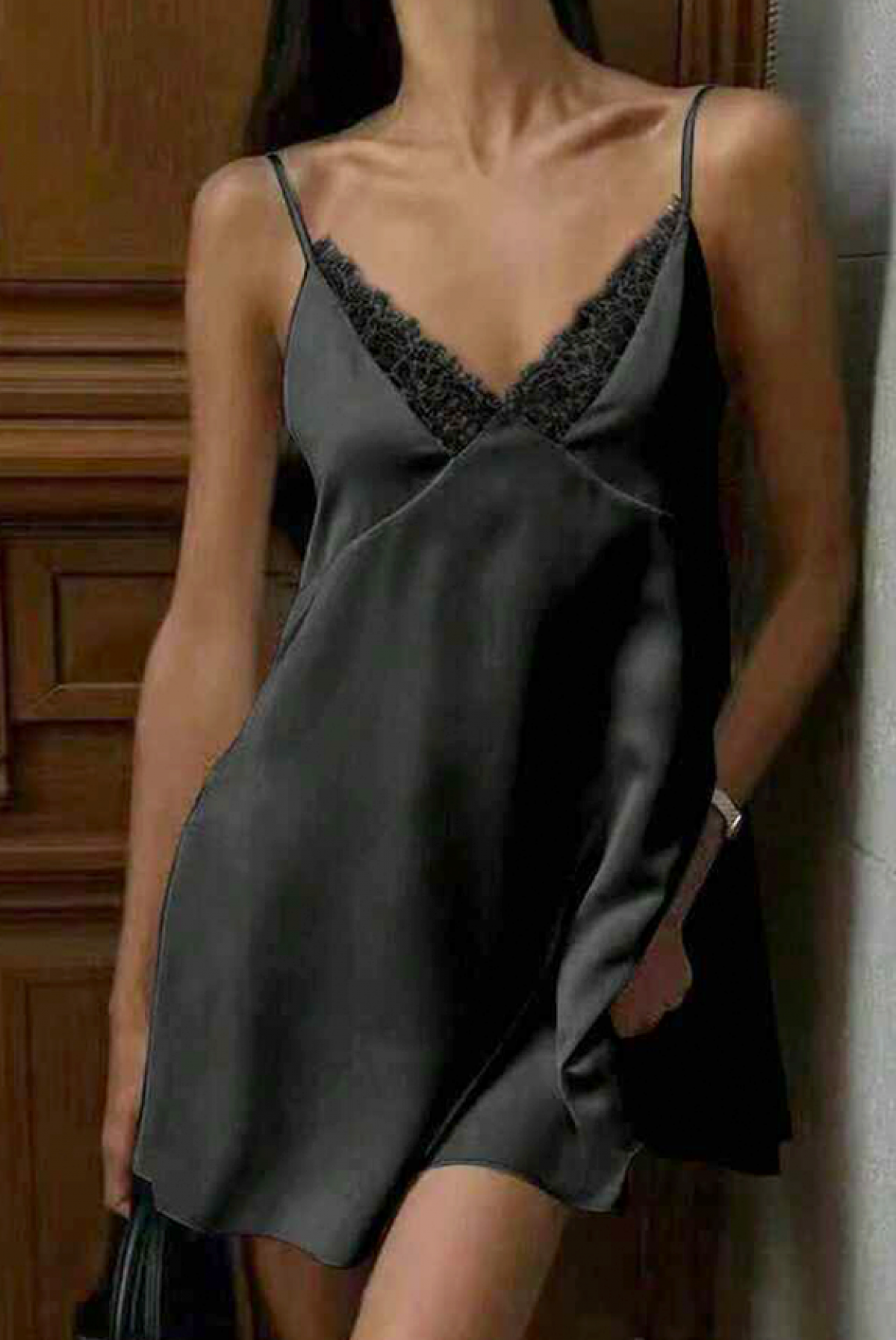 - Sukienka ma wygodny i luźny krój, krótką długość, efektowną koronkę, cienkie ramiączka i seksowny dekolt.