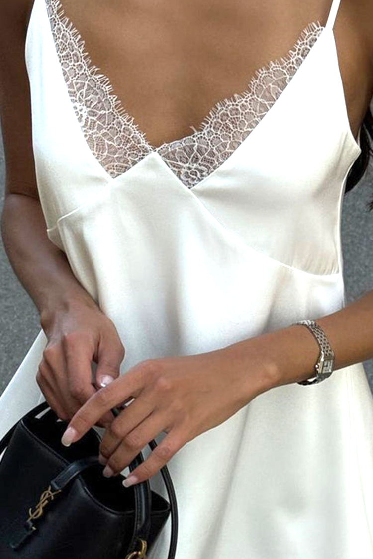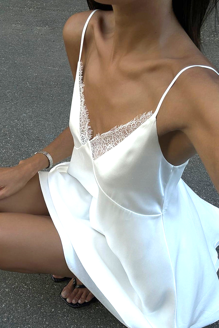 - Sukienka ma wygodny i luźny krój, krótką długość, efektowną koronkę, cienkie ramiączka i seksowny dekolt.