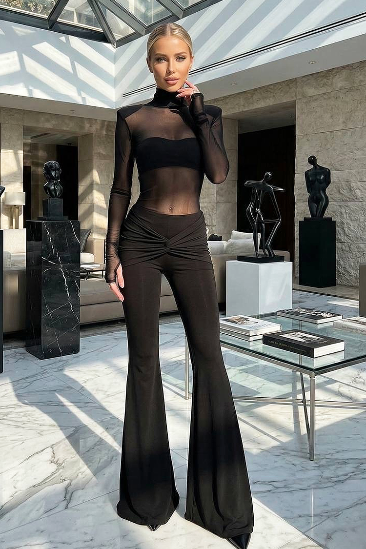 - Góra to body o atrakcyjnym kroju, z długimi rękawami i tiulową tkaniną.