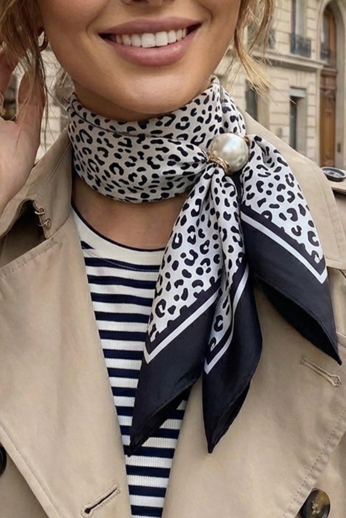 - Wybierz efektowny dodatek do swojej stylizacji i dodaj elegancji swojej codziennej stylizacji dzięki spektakularnej apaszce w modnym wzorze.