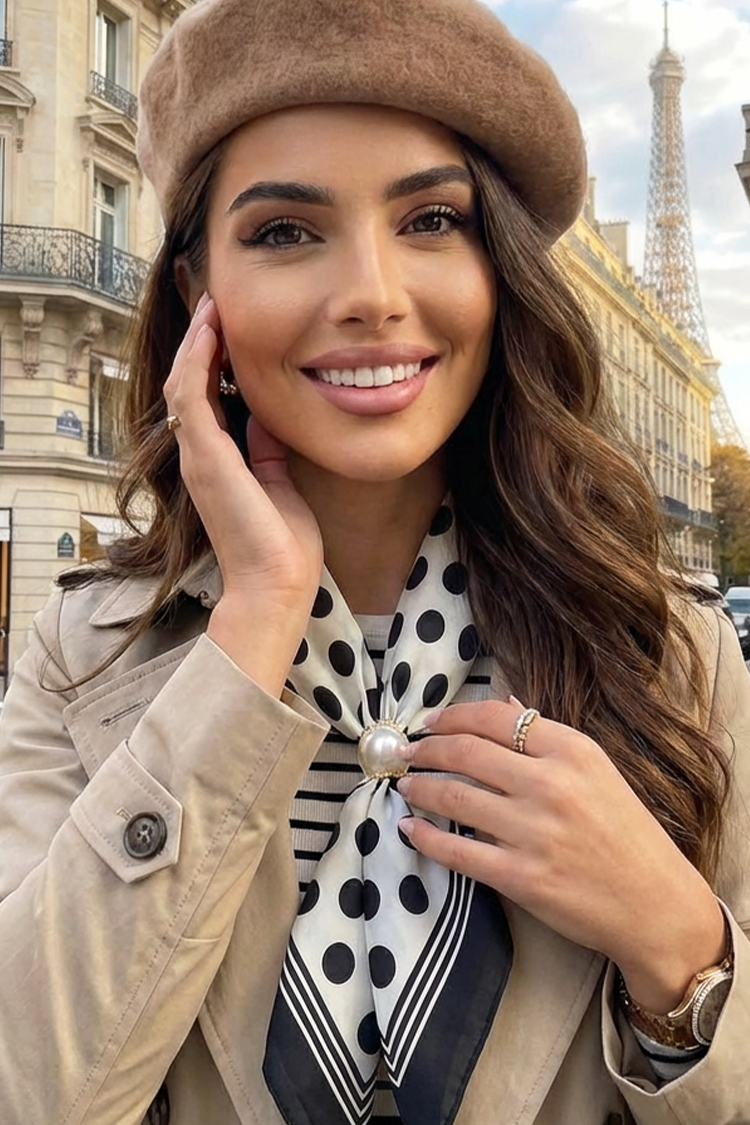 - Wybierz efektowny dodatek do swojej stylizacji i dodaj elegancji swojej codziennej stylizacji dzięki spektakularnej apaszce w modnym wzorze.