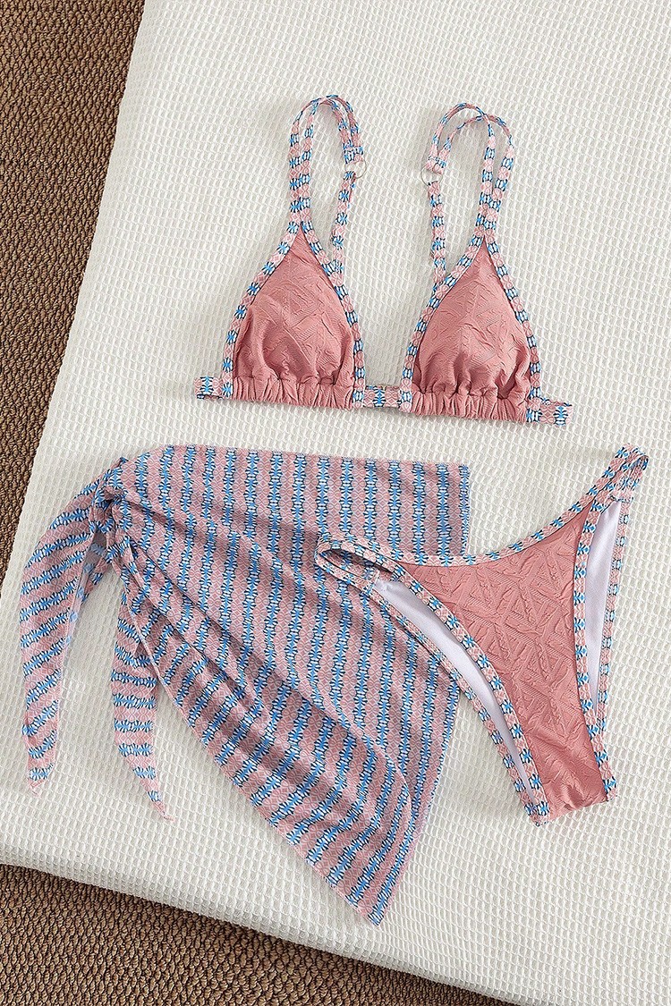 - Nowoczesny komplet plażowy składający się z dwuczęściowego kostiumu kąpielowego i pareo.
