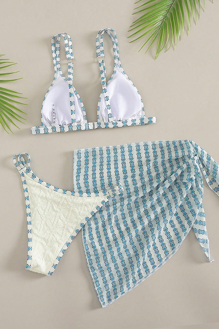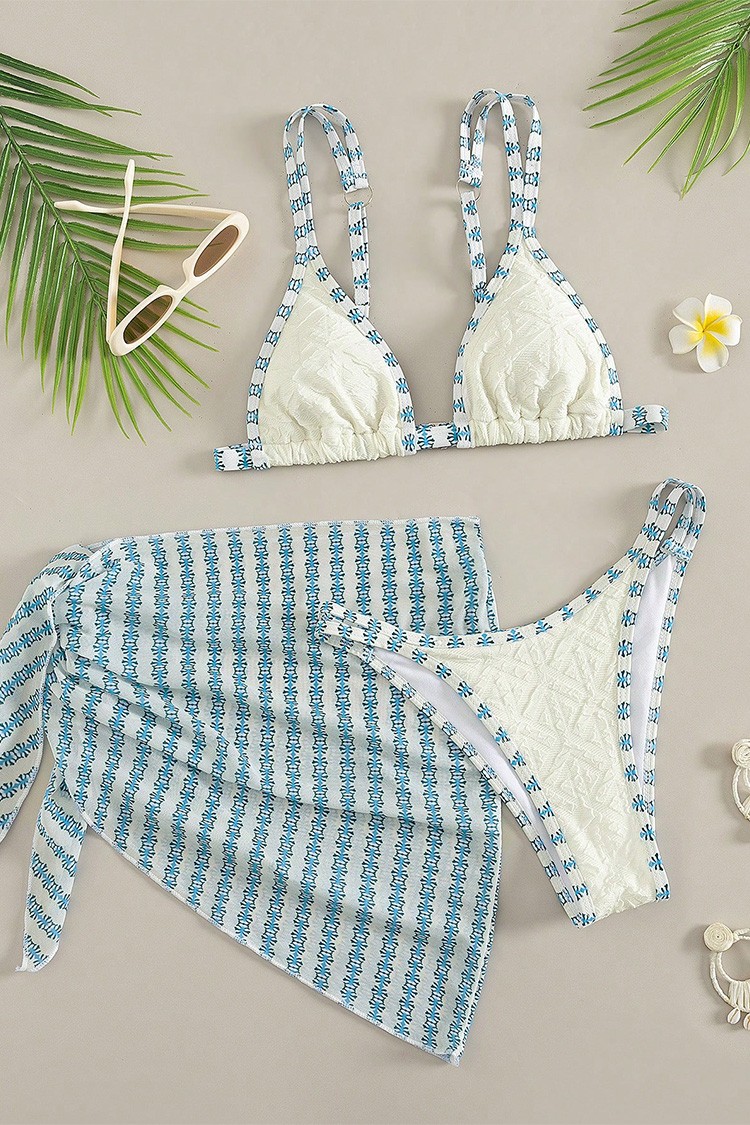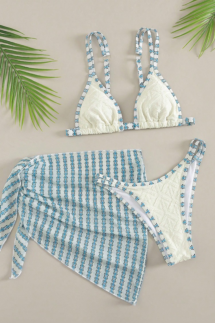 - Nowoczesny komplet plażowy składający się z dwuczęściowego kostiumu kąpielowego i pareo.