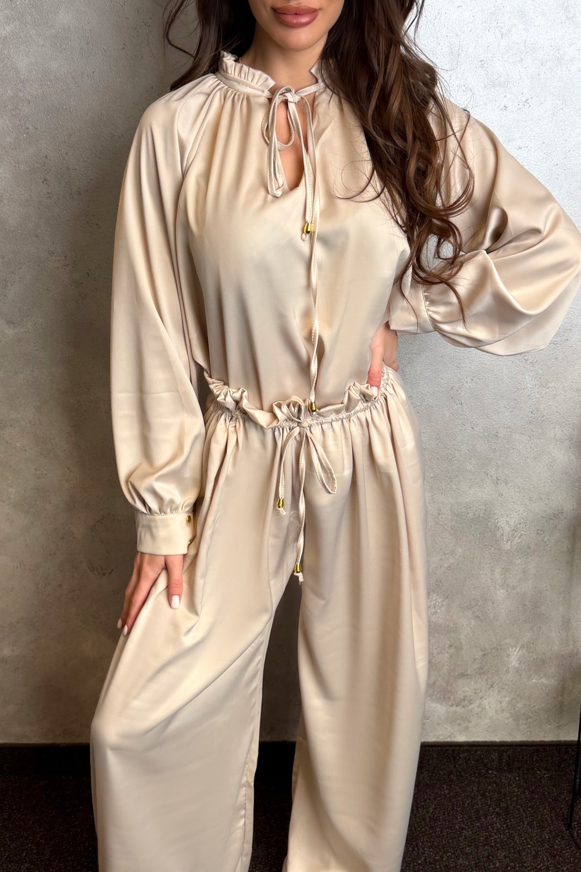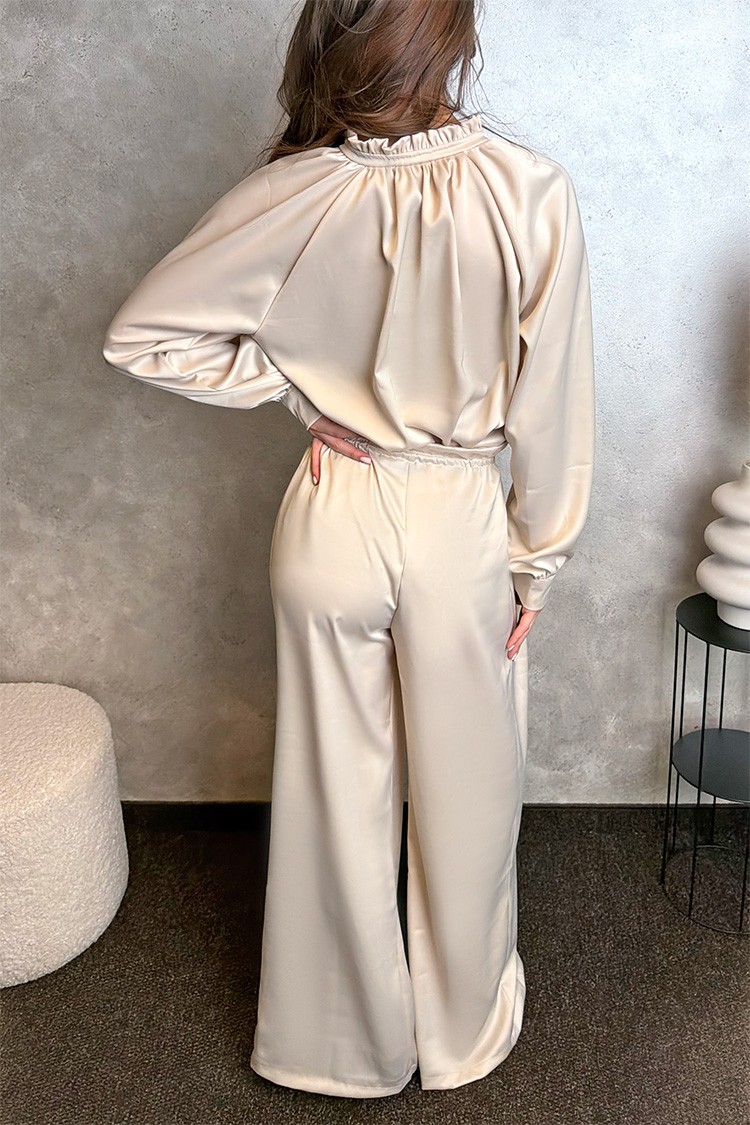 - Bluzka z górną połówką o eleganckim kroju, klasycznym dekolcie, długich rękawach i oversize'owym kroju.