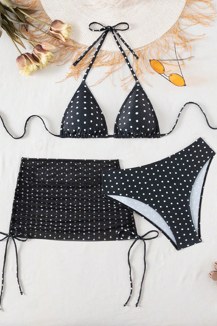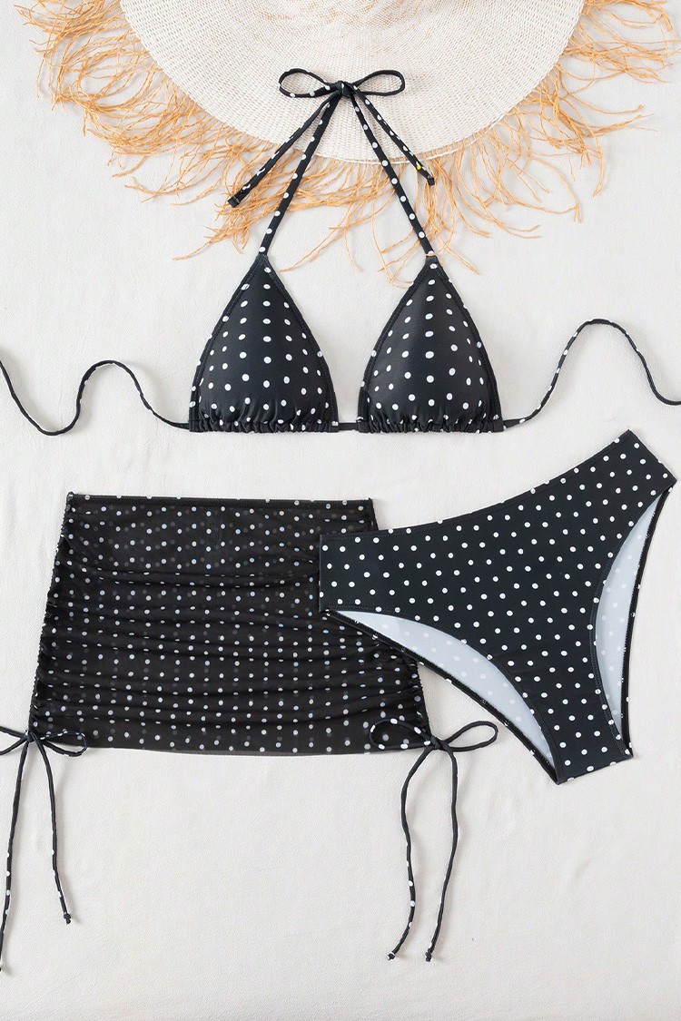- Nowoczesny komplet plażowy składający się zdwuczęściowego kostiumu kąpielowego i spódnicy.