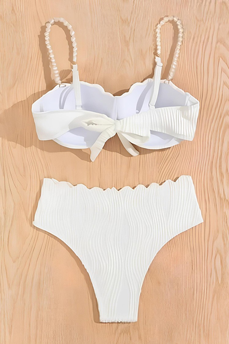 - Góra posiada wyjmowane wkładki, stylowe, regulowane ramiączka z ozdobnymi perełkami.