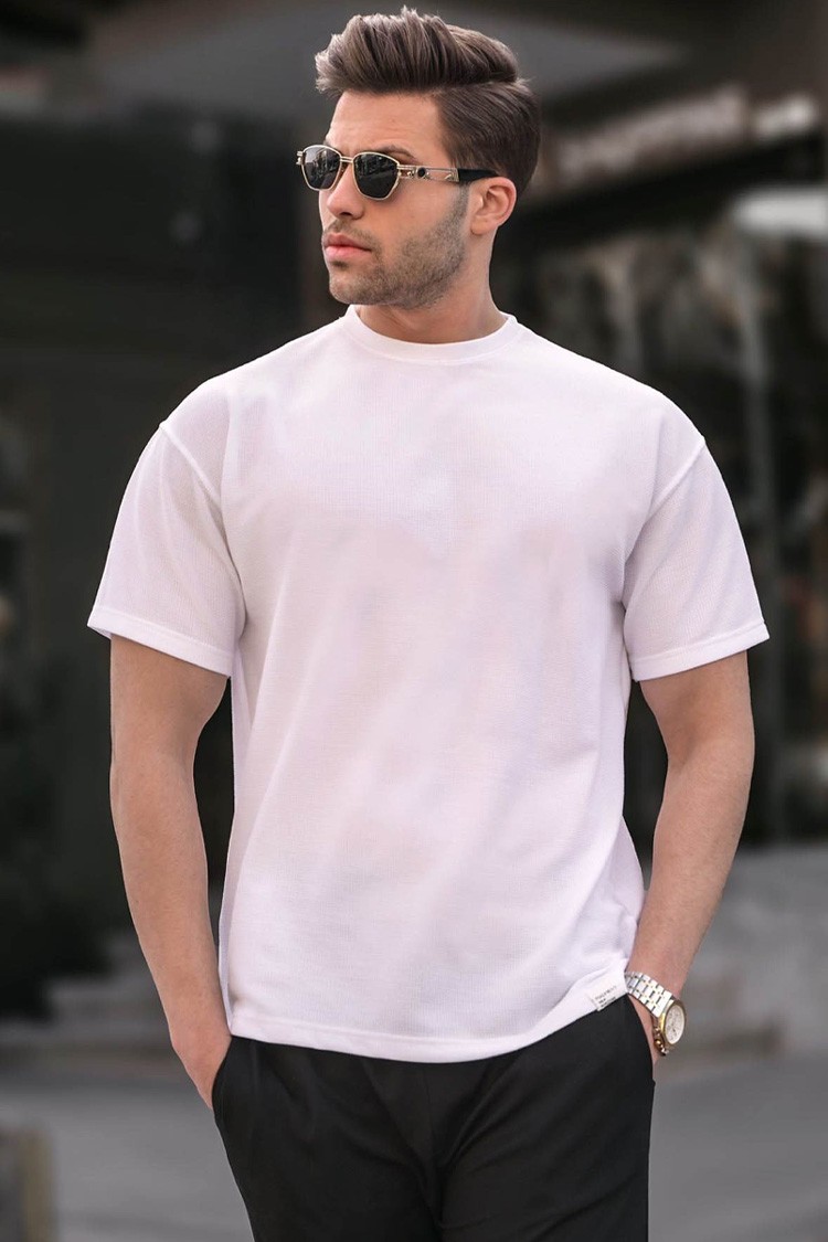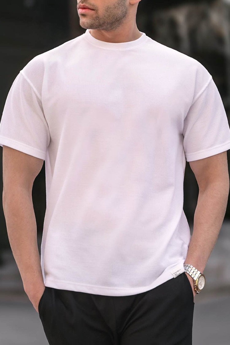 - Męski T-shirt z okrągłym dekoltem, idealny jako dodatek do codziennych stylizacji lub do uprawiania sportu.