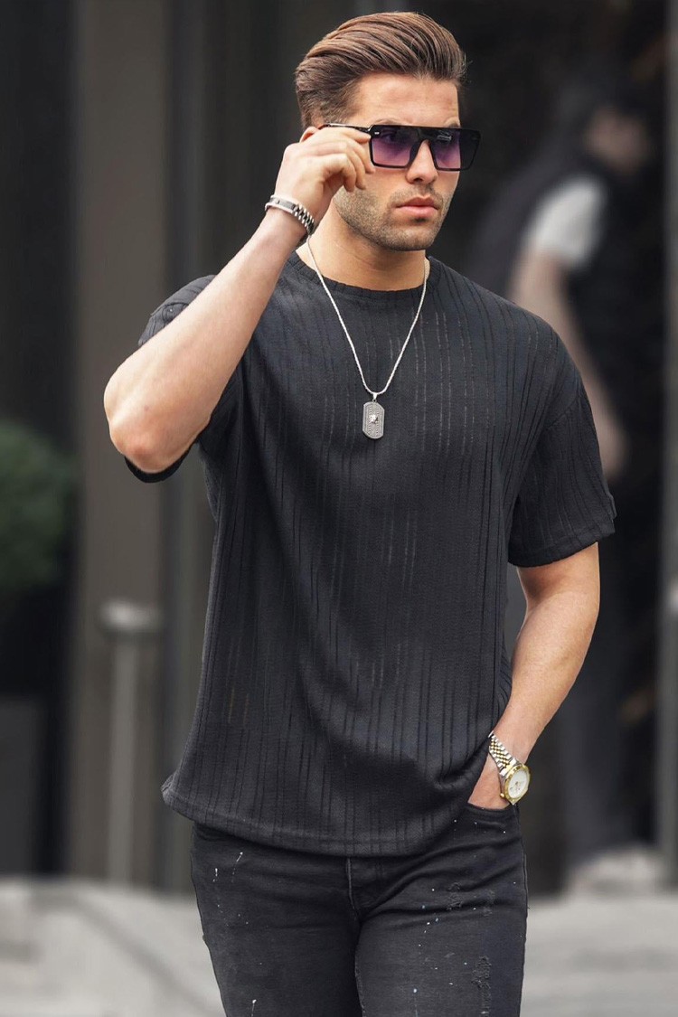 - Męski T-shirt z okrągłym dekoltem, idealny jako dodatek do codziennych stylizacji lub odzieży sportowej.