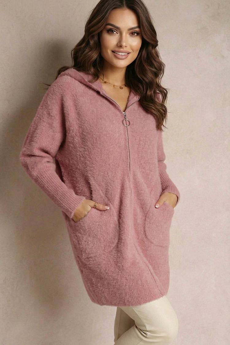 - Model ma luźny krój, który idealnie dopasowuje się do każdej sylwetki, a wygodny kaptur i zamek błyskawiczny na całej długości dodają funkcjonalności.