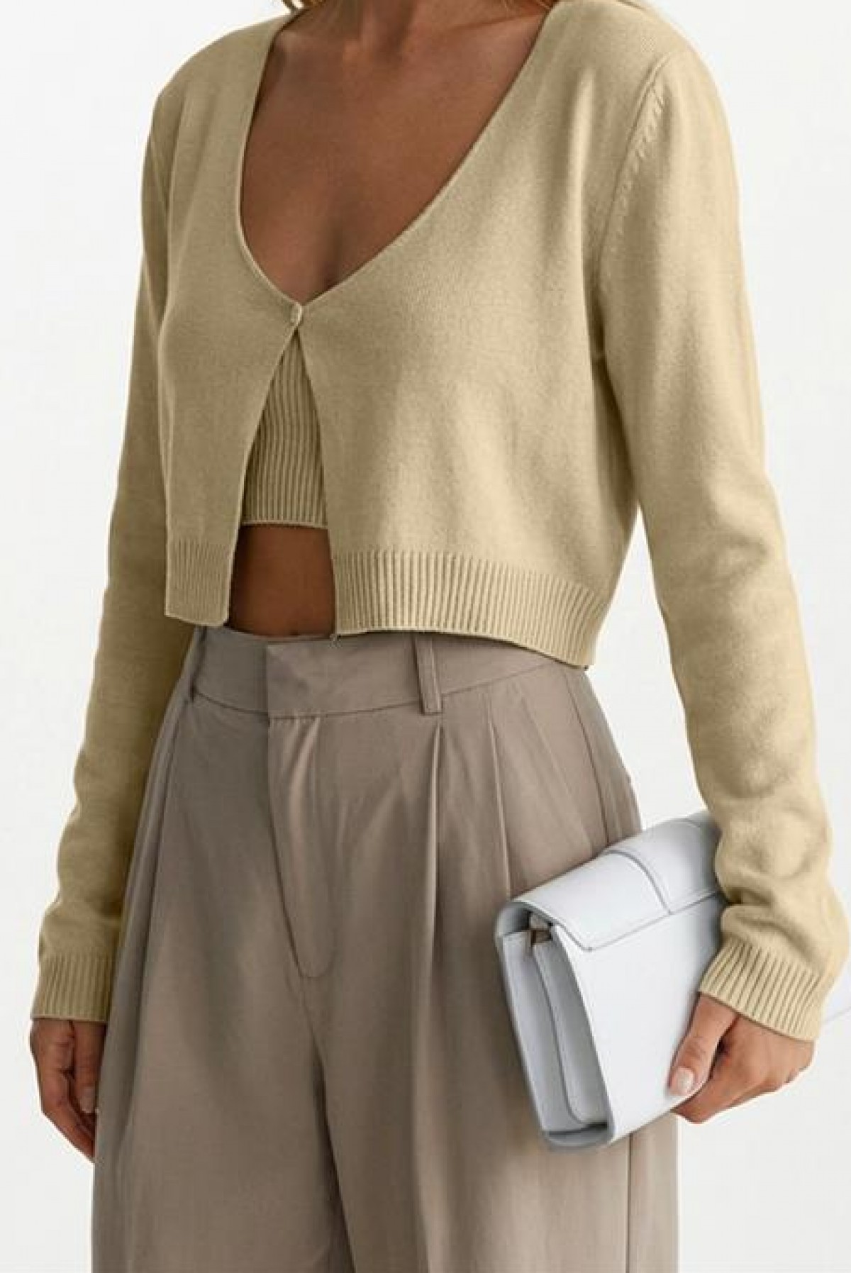 - Dwuczęściowy komplet damski w beżowym kolorze – idealny zarówno do codziennych, jak i nowoczesnych stylizacji.